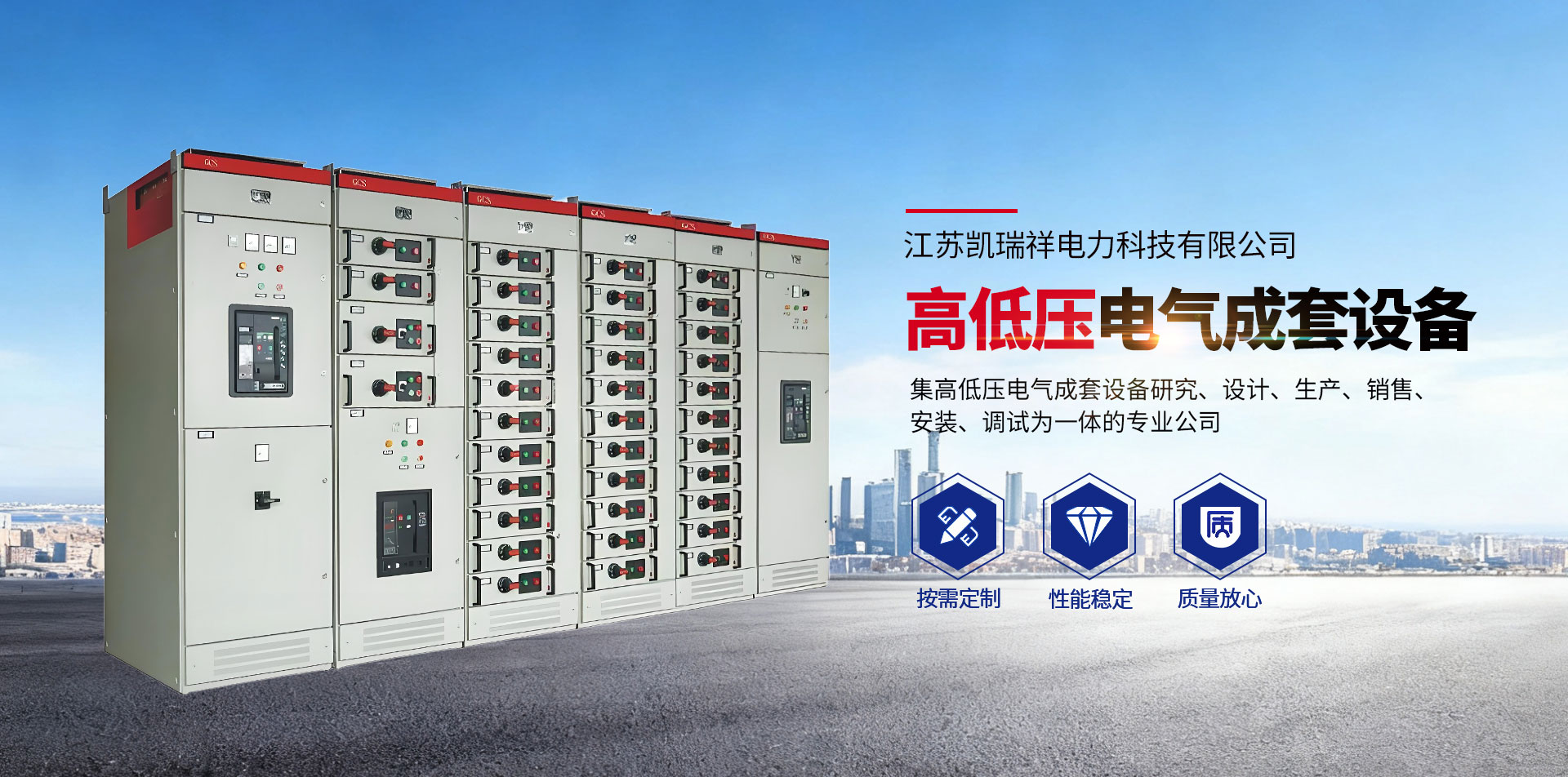 江蘇凱瑞祥電力科技有限公司座落在江蘇省阜寧縣:距風景區(qū)金沙湖沙灘浴場約5公里,是一家集高低壓電氣成套設備研究、設計、生產、銷售、安裝、調試為一體的專業(yè)公司。現(xiàn)有員工200余人,其中技術人員約占50%,固定資產近5000萬元,注冊資金5808萬元,占地面積約3.2萬㎡,建筑面積約1.86萬㎡。
